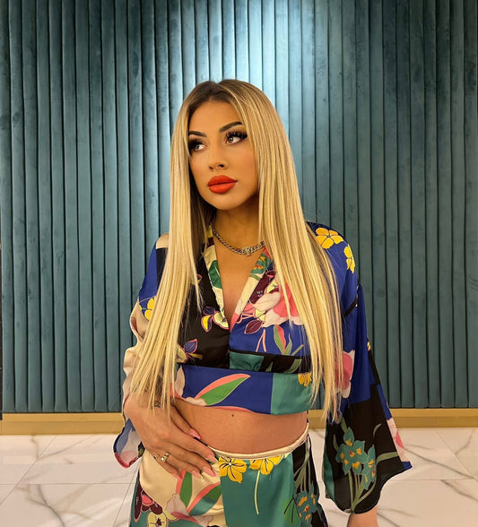 2-teiliges Set aus blumen Crop-Top und langer Hose